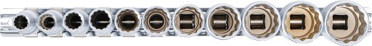 Dugókulcskészlet, tizenkétszögletű, mély | 10 mm (3/8") | 8 - 19 mm | 11 darabos