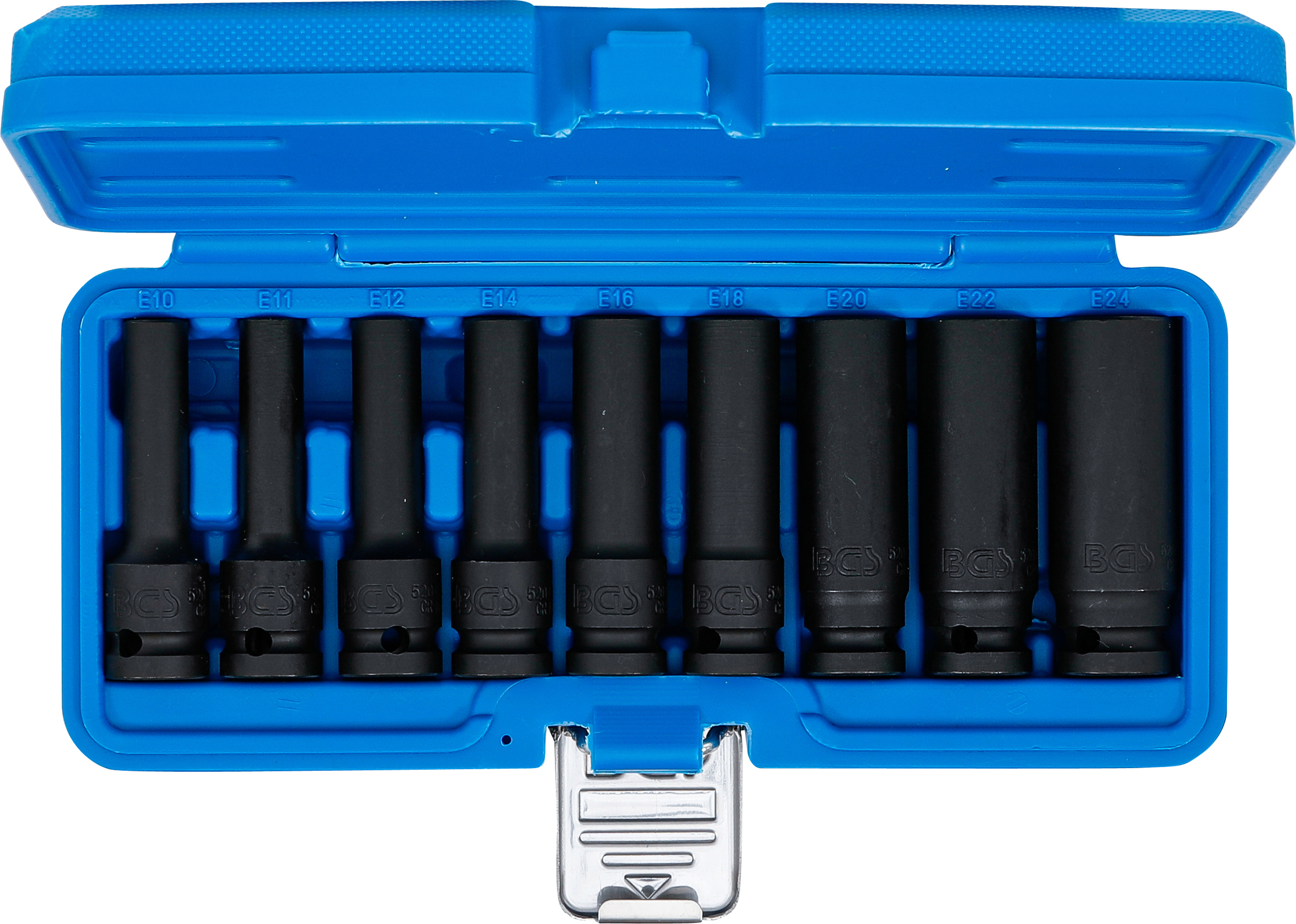 Levegős dugókulcskészlet E-profil, mély | 12,5 mm (1/2") | E10 - E24 | 9 darabos