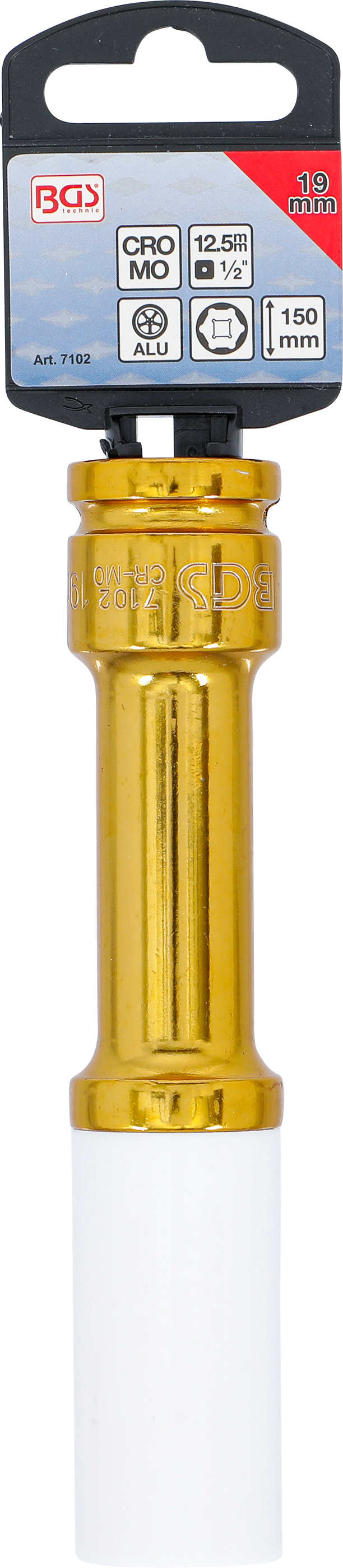 Meghajtó profil: Belső négyszögletű kulcsnyílású elem Meghajtó profil mérete, hüvelykmérték: 1/2 " Meghajtó profil mérete, metrikus: 12,5 mm Bruttó súly: 374 g Hossz: 150 mm Anyag: Króm-molibdén acél Kulcsméret: 19 mm Falikárpithoz alkalmas csomagolás: Igen