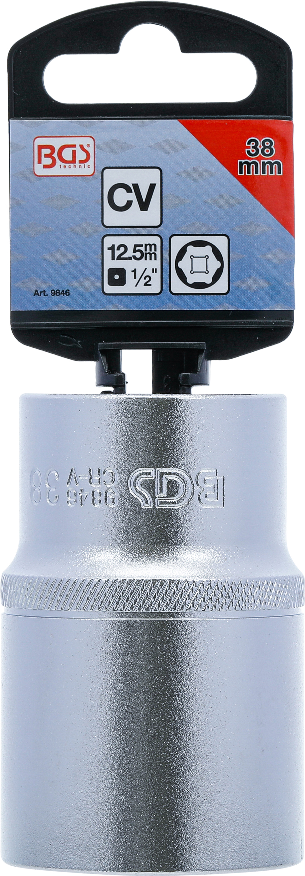 Meghajtott profil: Pro Torque® (hatszögletű) Meghajtó profil: Belső négyszögletű kulcsnyílású elem Meghajtó profil mérete, hüvelykmérték: 1/2 " Meghajtó profil mérete, metrikus: 12,5 mm Bruttó súly: 574 g Anyag: Króm-vanádium acél Felületjavítás: Krómozott, matt Kulcsméret: 38 mm Falikárpithoz alkalmas csomagolás: Igen