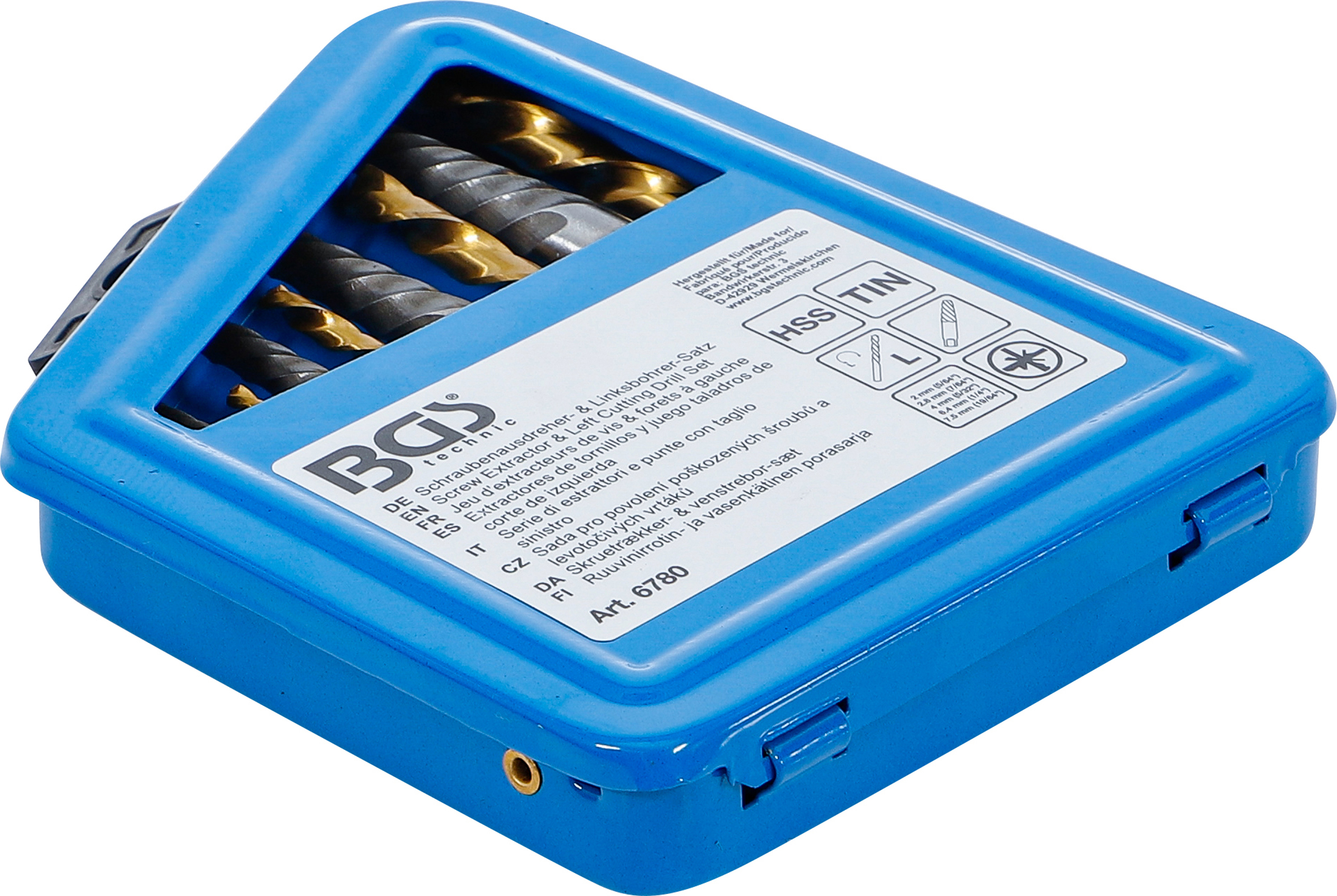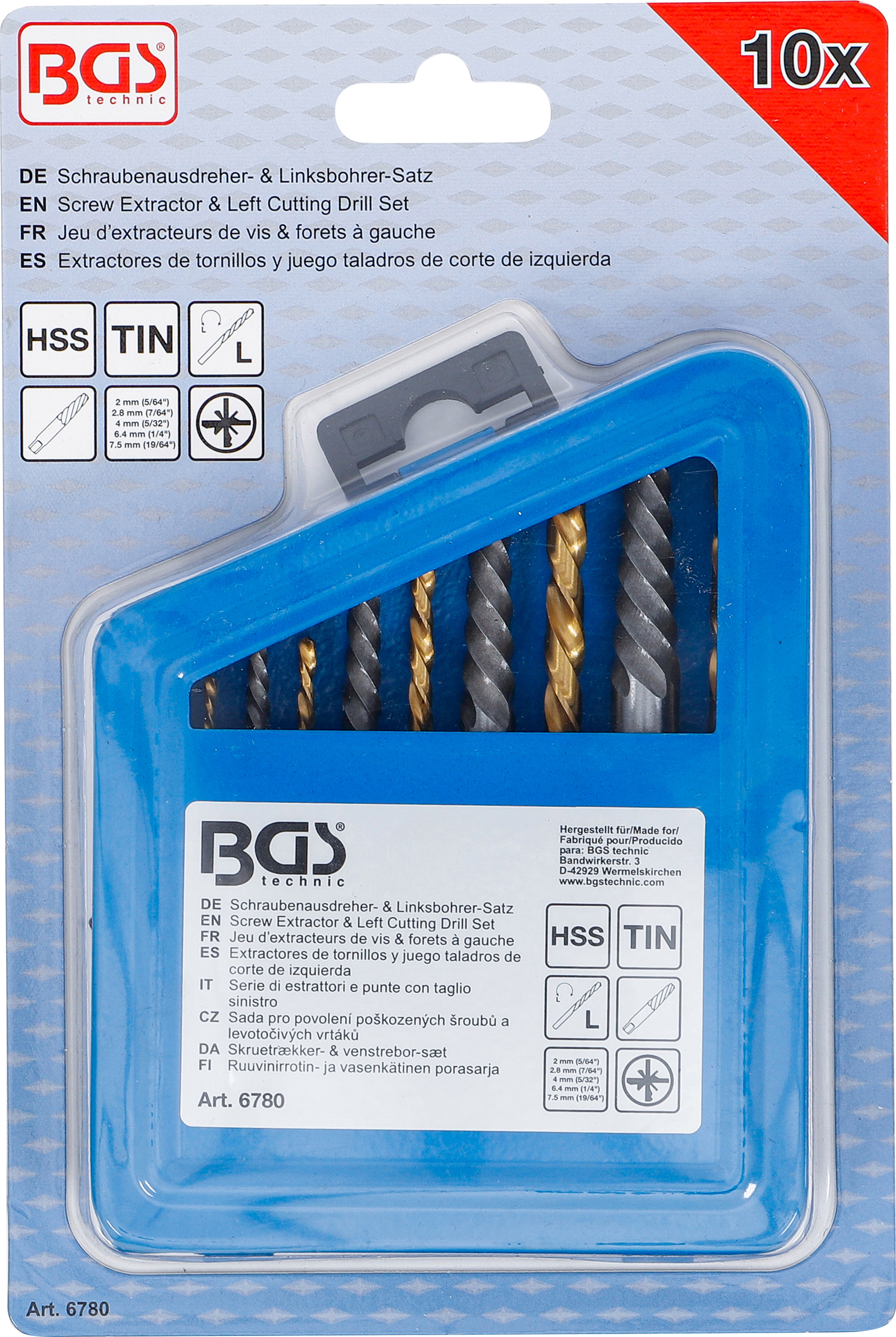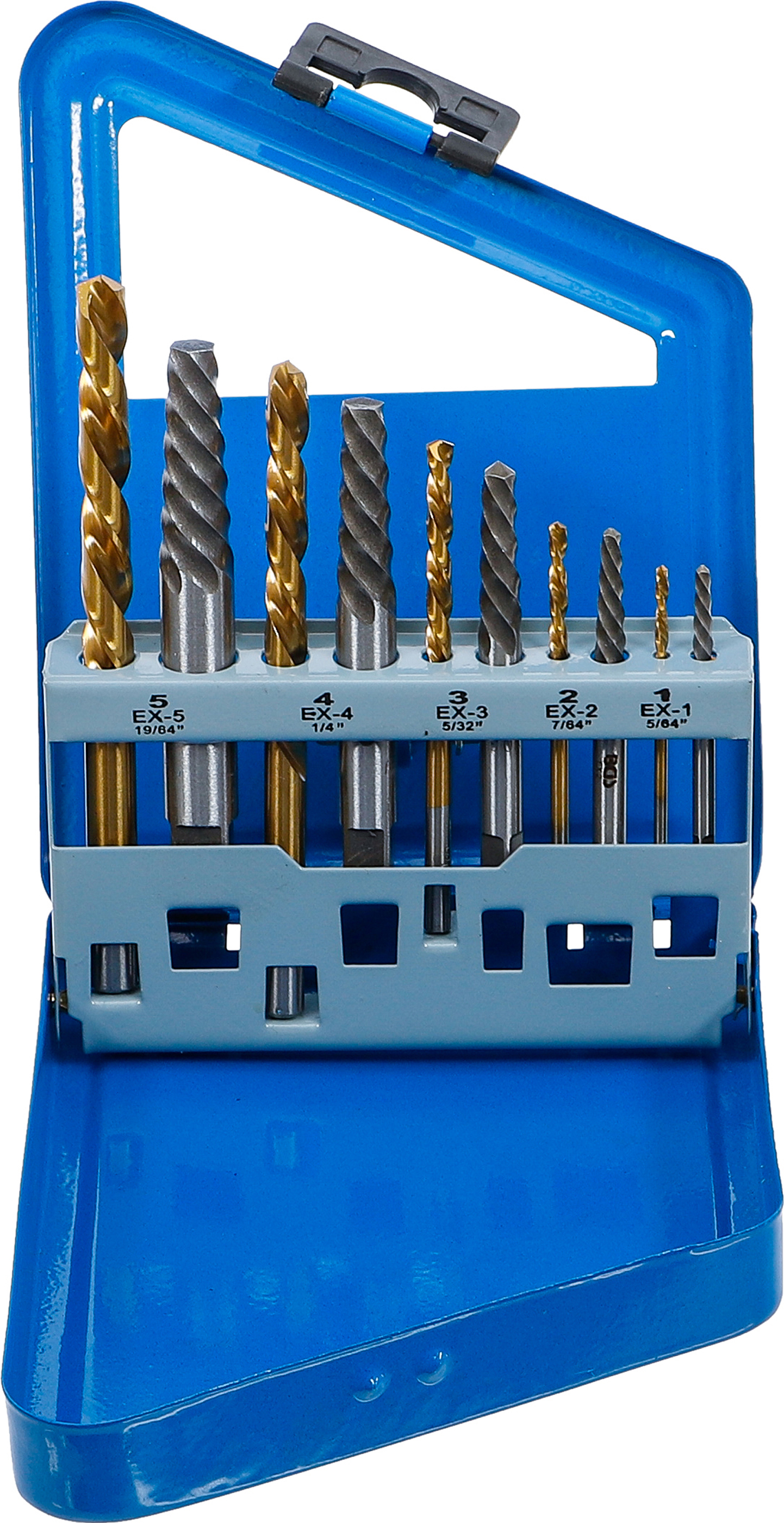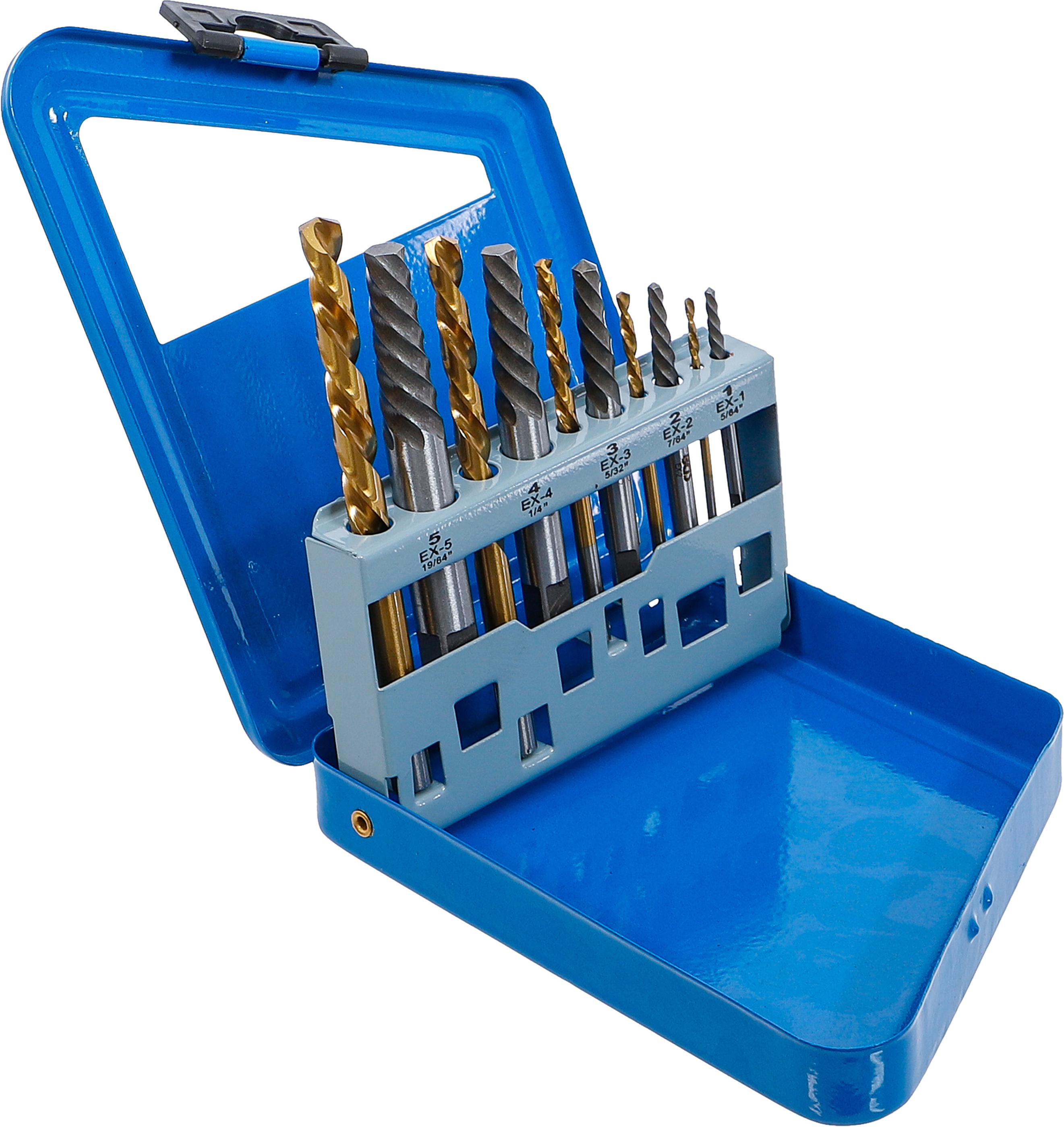 Csavarkiszedő és balra forgó fúrókészlet | HSS | titánnal ötvözött nitrátozott | 2 - 7,5 mm | 10 darabos