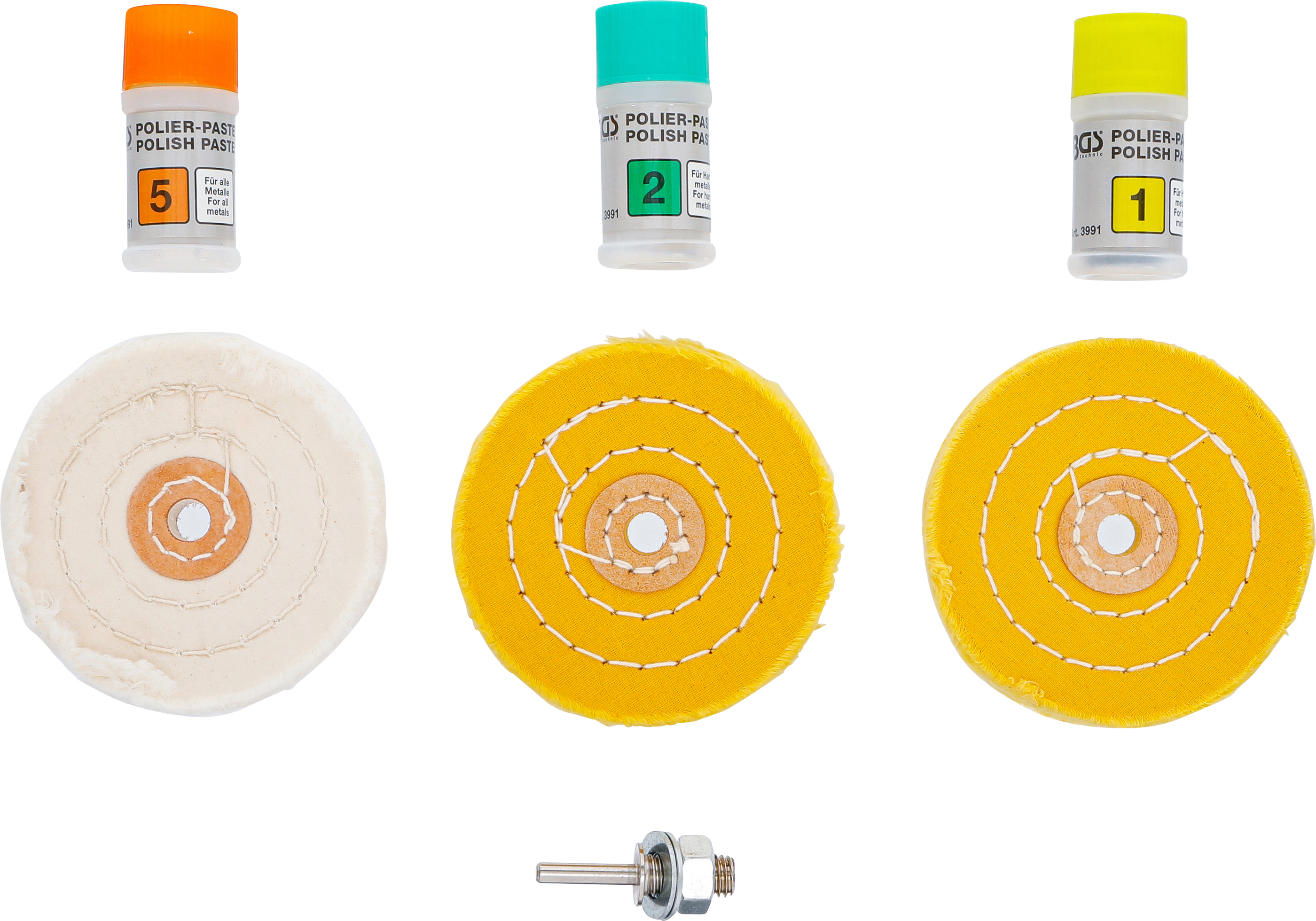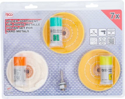 - Teljes készlet kemény fémek, például acél, nemesacél és vas karcmentesítéséhez és polírozásához