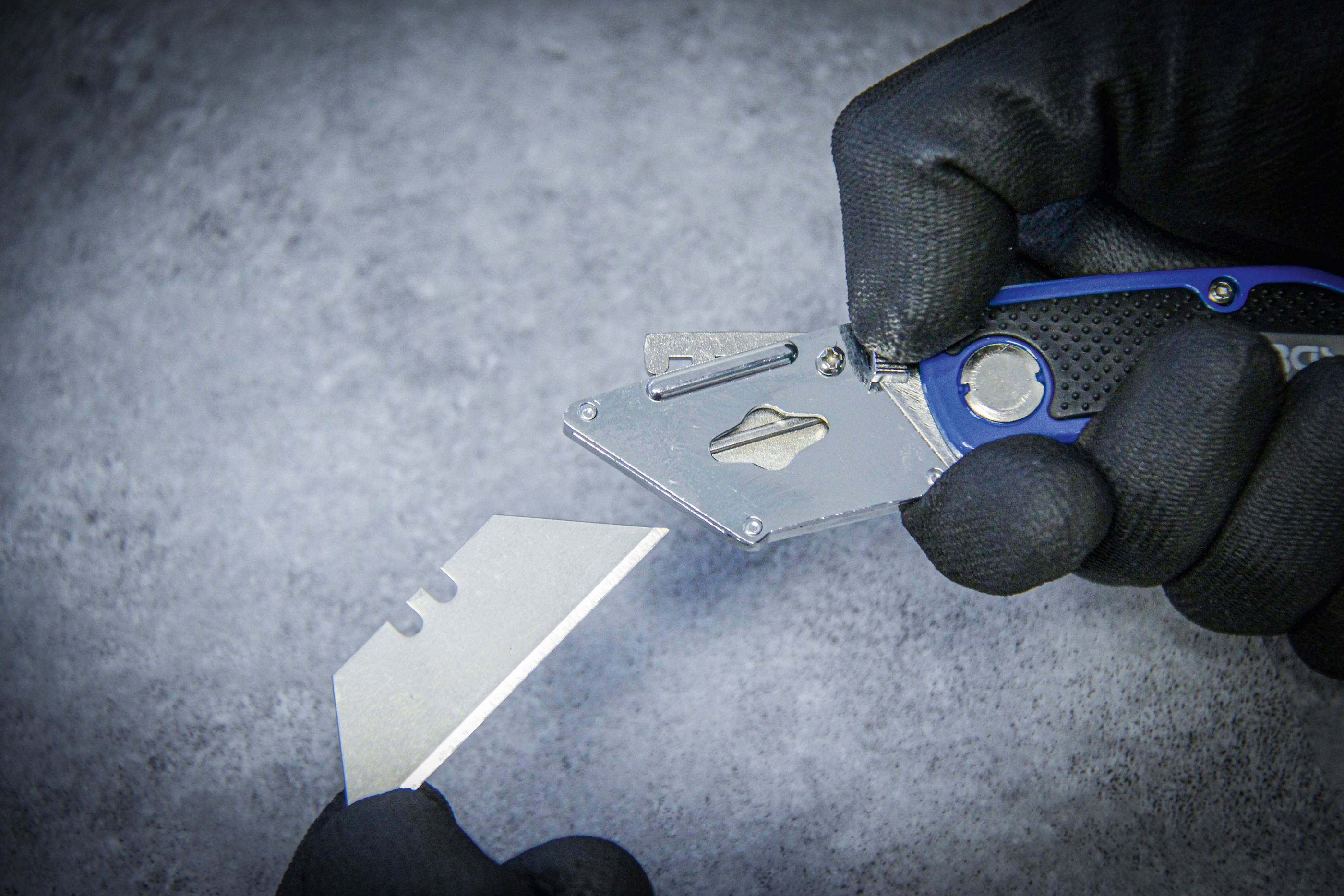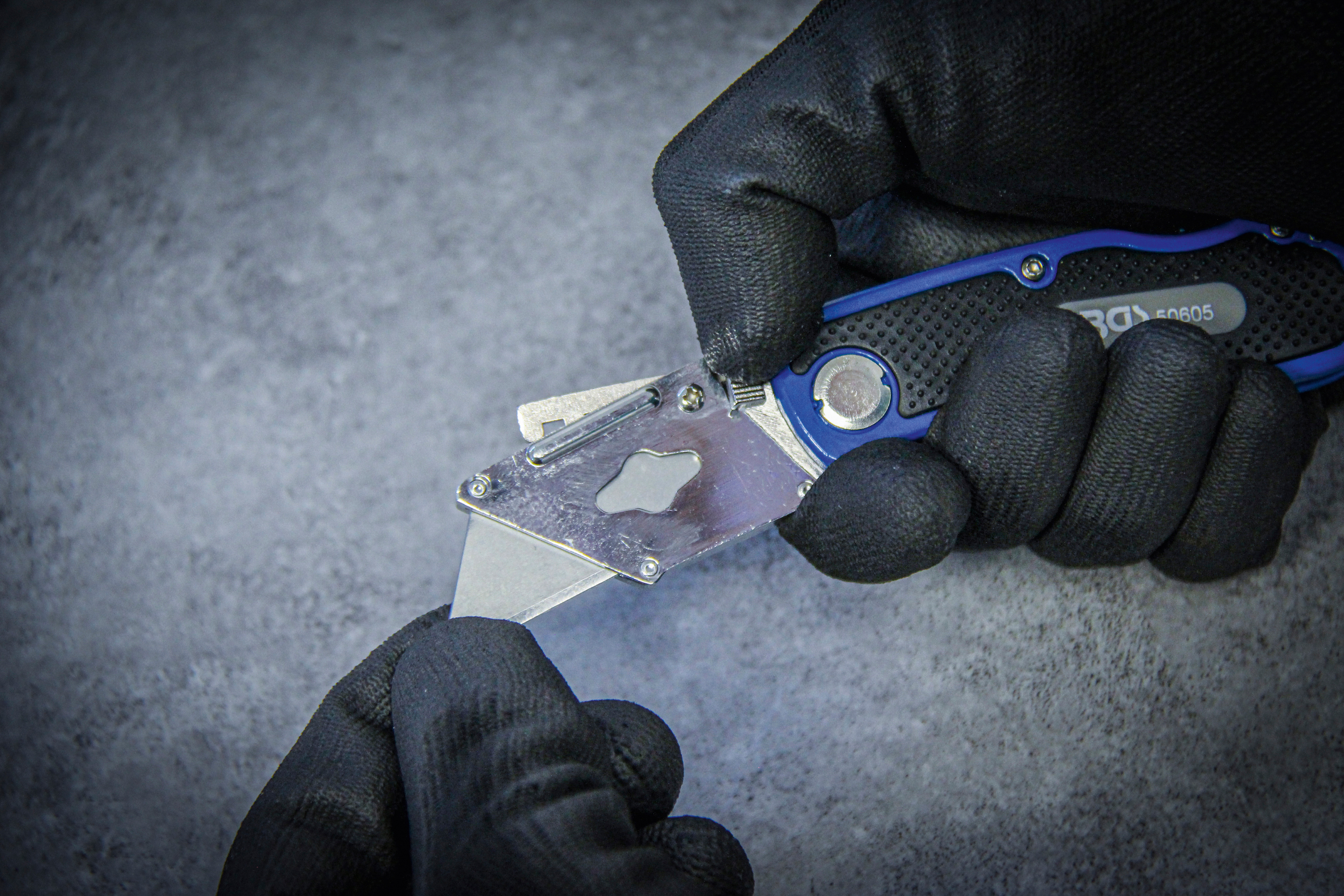 • A kés a reteszelő mechanizmusnak köszönhetően nyitott állapotban marad, és a markolat hátuljánál kioldható, hogy össze lehessen csukni