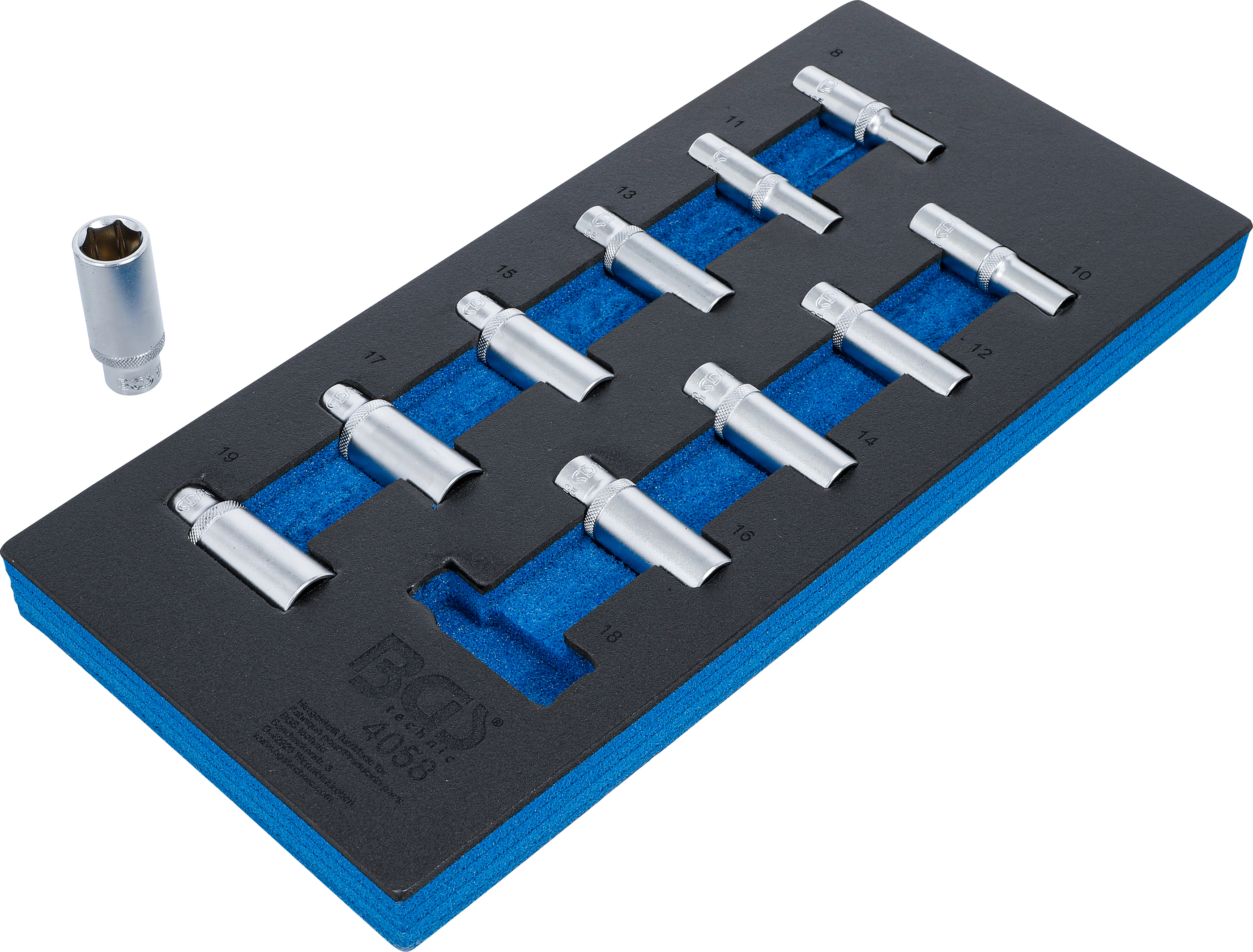 - 11 dugókulcs, 10 mm (3/8"): 8 - 10 - 11 - 12 - 13 - 14 - 15 - 16 - 17 - 18 - 19 mm
