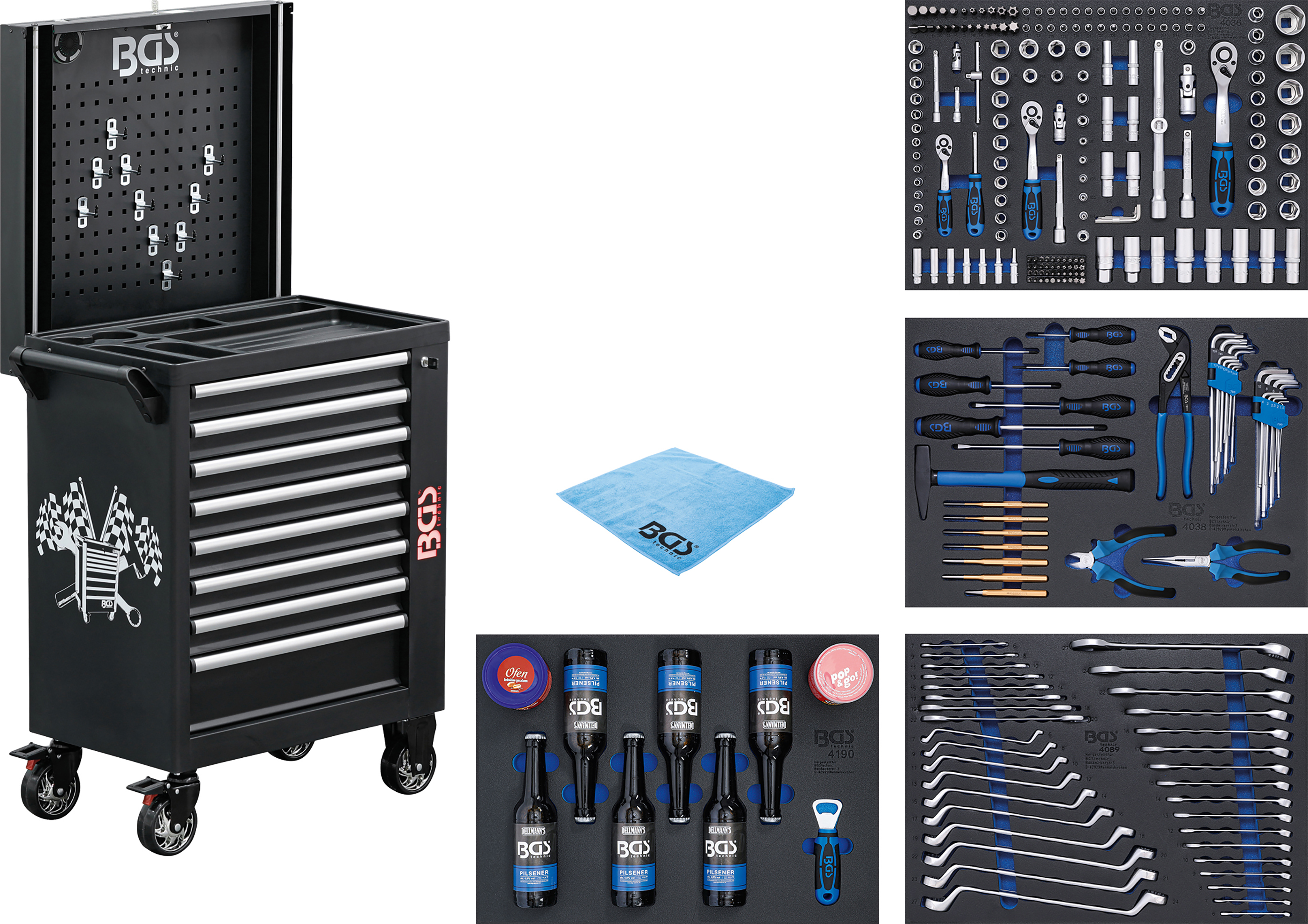 • 1 műhelykocsi-betét 3/3: Dugókulcskészlet | 192 darabos (BGS 4036)