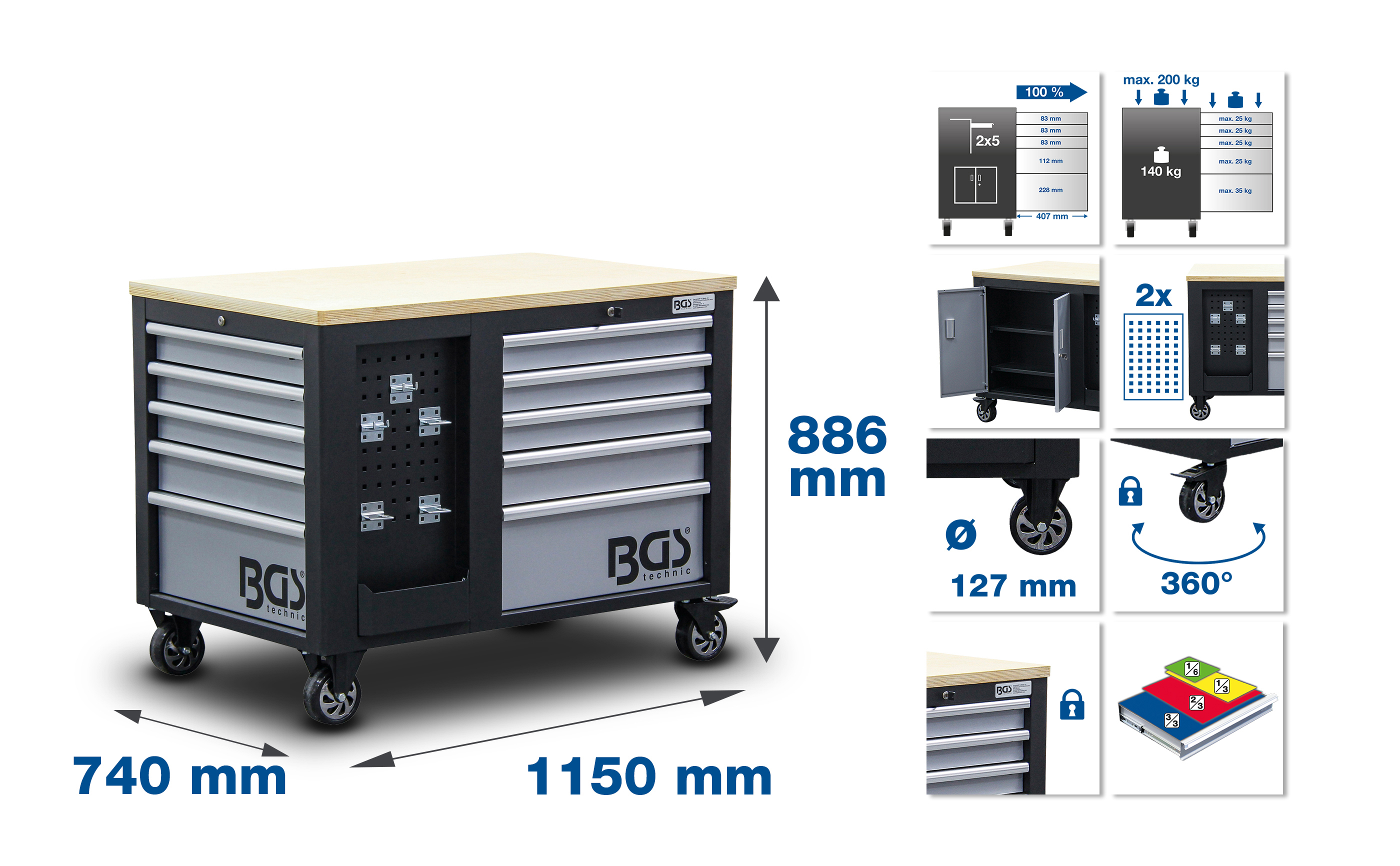Fiókok száma: 10 Darab Szélesség: 1150 mm Bruttó súly: 157000 g Súly: 140 kg Magasság: 866 mm Hossz: 740 mm Fióksín: 100 % Fiókszélesség: 569 mm Fiókmagasság: 6 x 69,5 | 2 x 98,5 | 2 x 213,5 mm Fiókmélység: 407 mm