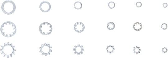 - rugós, fogazott és biztosító alátétek