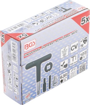 Olajleeresztő kulcs készlet | Műanyag olajleeresztő csavarokhoz | Külső hatszögletű kulcsnyílású hajtás 6,3 mm (1/4"), külső hatszögletű 10 mm (3/8") | 5 darabos
