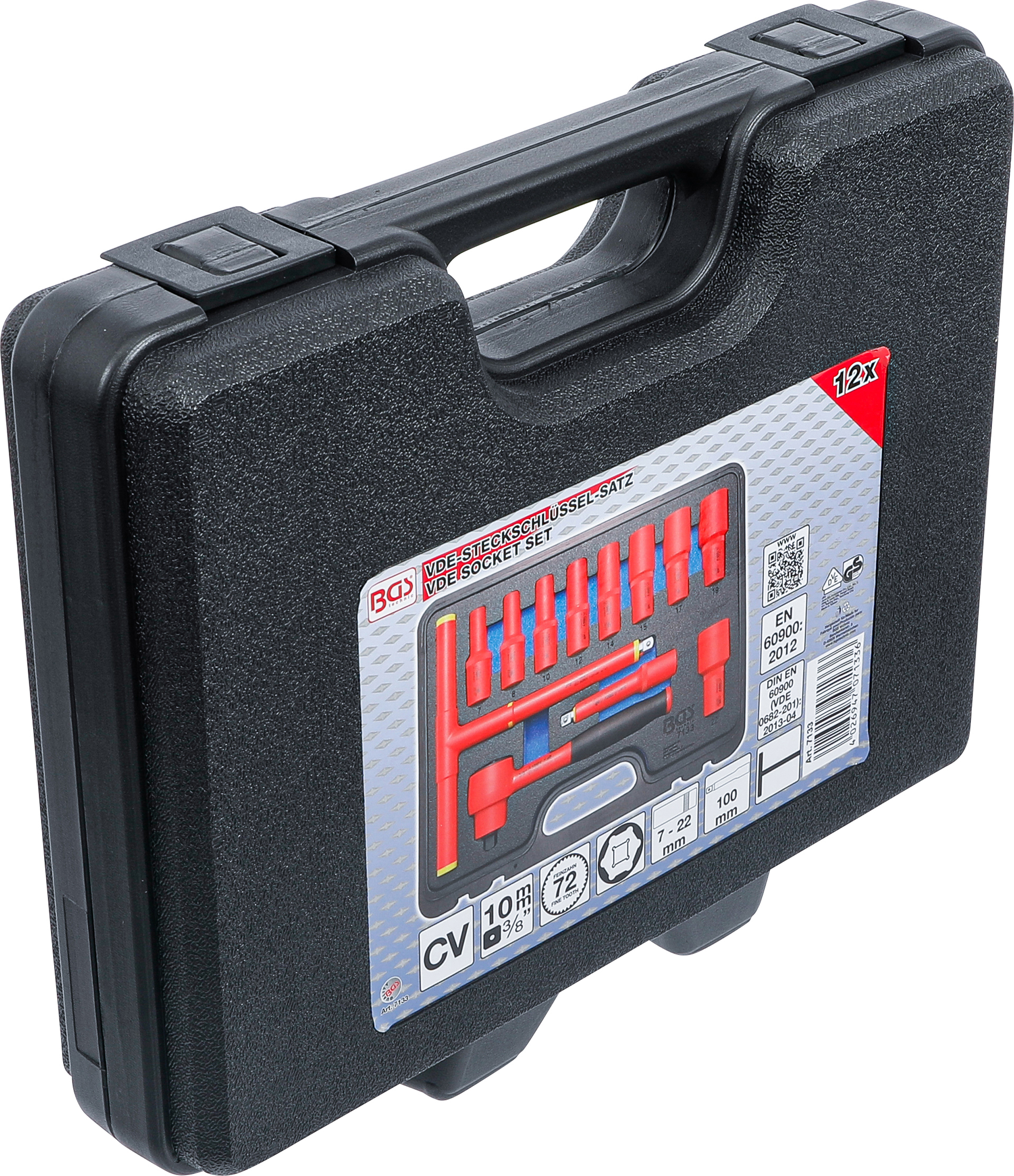 VDE-dugókulcskészlet | 10 mm (3/8") | 7 - 22 mm | 12 darabos