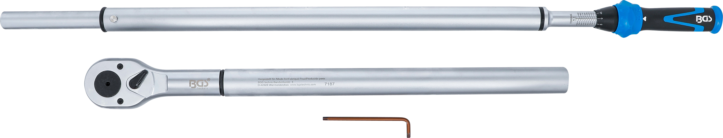 Meghajtott profil: Külső négyszögletű kulcsnyílású elem Meghajtott profil méret, hüvelykmérték: 1 " Meghajtott profil méret, metrikus: 25 mm Racsnifej fogainak száma: 24 Bekapcsolási pontosság: +/- 3 % Bruttó súly: 10782 g Forgatónyomaték max.: 1000 Nm Forgatónyomaték min.: 150 Nm Hossz: 1500 mm