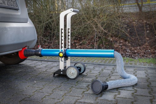 - Az egycsöves kipufogótölcsér gumikúppal rendelkezik a kipufogógázok elszívására