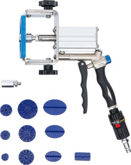 - 10 különböző méretű/alakú horpadásjavító párnával és egy hosszabbító adapterrel együtt